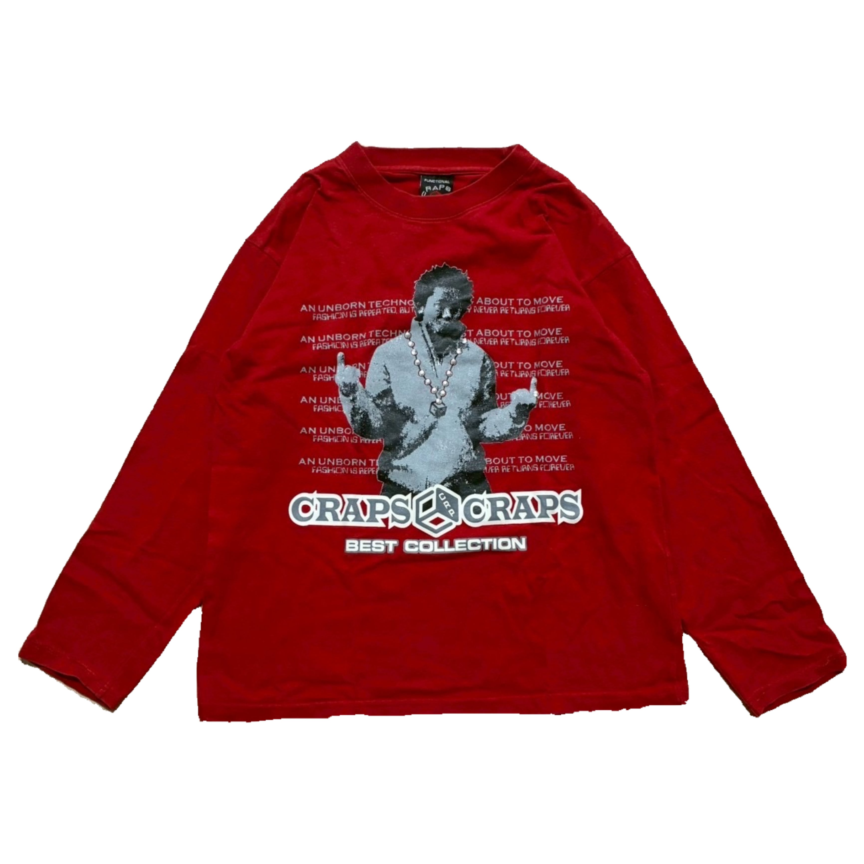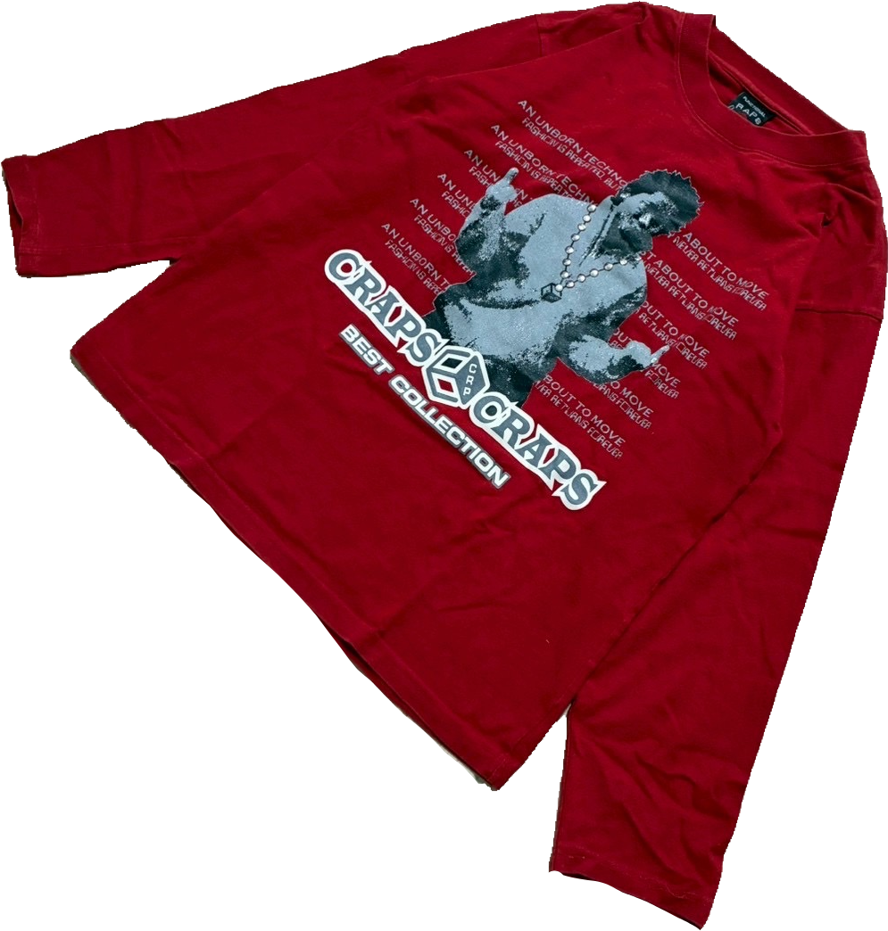 アクセントの強い赤色ベースのロンTなので、
